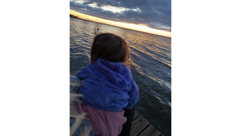 My sister and brother-in-law live on the lake so I always go watch the sunset if I'm there at night. My niece loves to be outside so we sat on the dock for a half hour as the sunset and then stayed a little bit after because she didn't want to go inside.