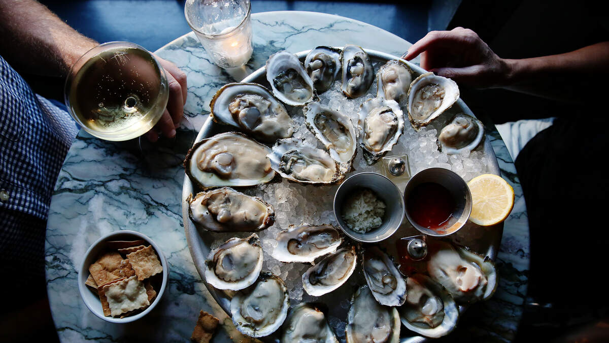 Oysters was named the #1 food to AVOID on a first date . . . followed by mussels, sushi, crab, lobster, curry, tuna steak, prawns, ribs, and corn on the cob.