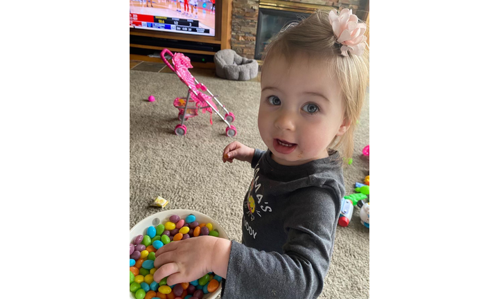 Ava came over Saturday to spend the night. Here she is trying her very first jelly beans!