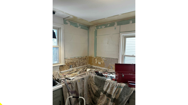 I wanted to tackle a kitchen project I've been putting off since June. I knocked down some of my the upper cabinets to put in open shelving and open the space up. I had no idea how to fix the wall so I reached out to my sister that is a DIY home remodeling queen and she started guiding me through what I needed to do which was basically mudding. I watched a ton of YouTube videos and let me tell you, this is one thing from YouTube University I learned and didn't excel at right away. I fixed up the lower third on Saturday (1st pic is what it looked like before) and then did a full layer on Sunday (2nd pic). Will I end up hiring someone to do it so that my walls aren't super uneven, maybe, but I'm still giving it a try for right now!