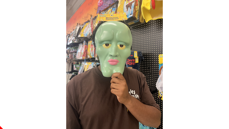 Went to Spirit Halloween for all the spooky vibes and considered buying this Handsome Squidward mask.