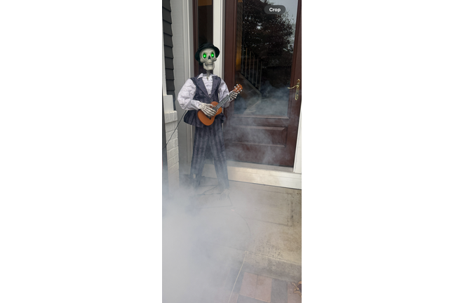 Halloween night! It’s my traditional fog machine and sort of traditional ukulele playing skeleton to greet the trick-or-treaters!