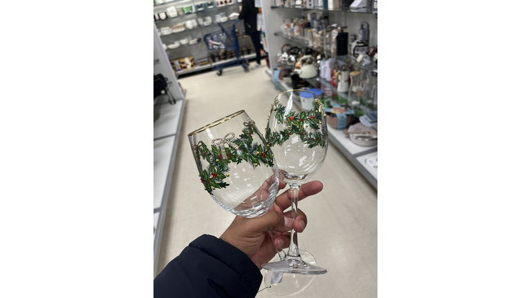 My stepmom sent me a pic of these holiday wine glasses from Marshall's that she saw and said that we HAVE to get them. Alyssa loves this type of stuff so I was sent on a mission to go get them and they were nicer than I expected to be honest.