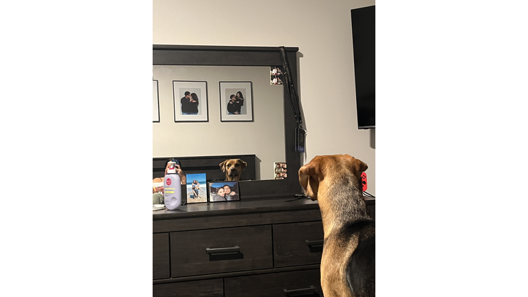 Ava is such a scaredy cat, she was confused at herself when looking in the mirror.