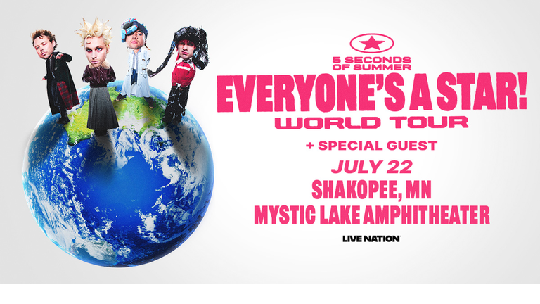 5 Seconds of Summer 5 Seconds of Summer: EVERYONE’S A STAR! World Tour Mystic Lake Amphitheater Shakopee | July 22nd, 2026 CLICK HERE FOR TICKETS