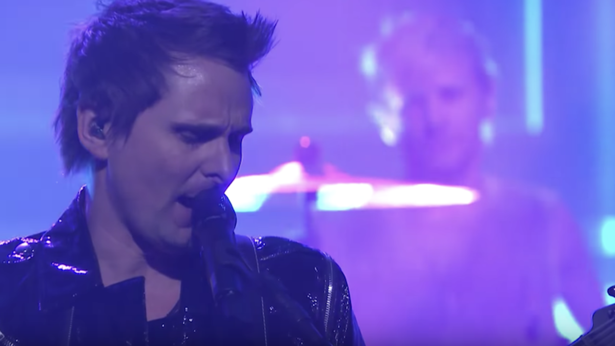 Muse celebrated the release of their eighth studio album Simulation Theory on November 9th, and on Tuesday night (November 13), the alt-rockers brought the album's latest single, "Pressure," to The Tonight Show Starring Jimmy Fallon stage. Vocalist/guitarist Matthew Bellamy expelled his usual energy for the audience, crouching while shredding his guitar and enthusiastically singing in his signature head voice. The band brought along a horn section to breathe even more life into the '80s tinged song, but sadly there was no cameo from Terry Crews.