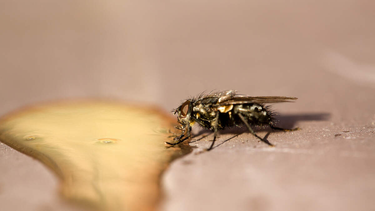 So when a fly throws up on your food, even though it's a tiny amount, they could be spreading dangerous bacteria onto it including salmonella and E. coli.