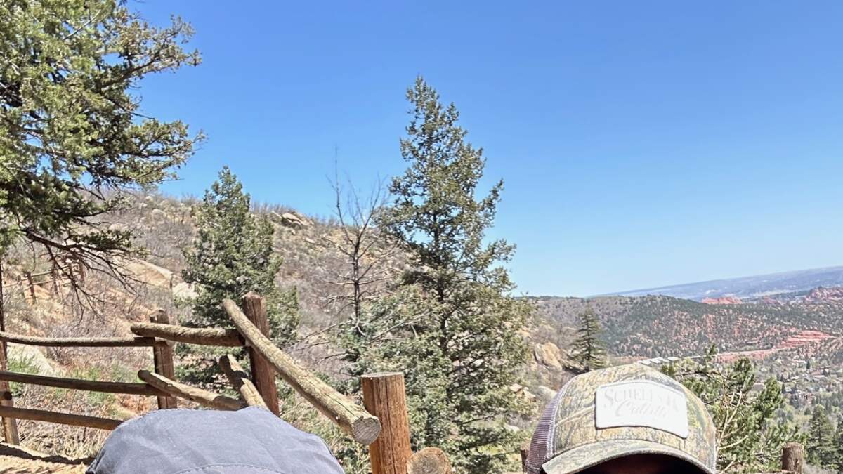This is me next to the Manitou incline. If you’ve never heard of the Manitou incline, look it up. It is by far the most popular hike in Colorado Springs. So popular that you have to make a reservation to use the trail. You can see someone in the background who is hiking up the incline, which is different than the trail that I took up.