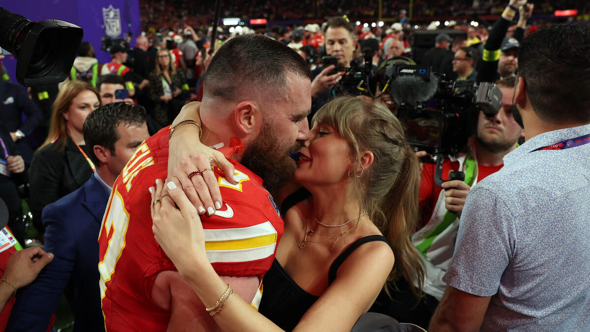 (Here in the REAL WORLD, things seem fine. Travis even admitted that Taylor IS drawing up plays for the Chiefs. But he said they all involve HIM, because she's, you know, biased.)